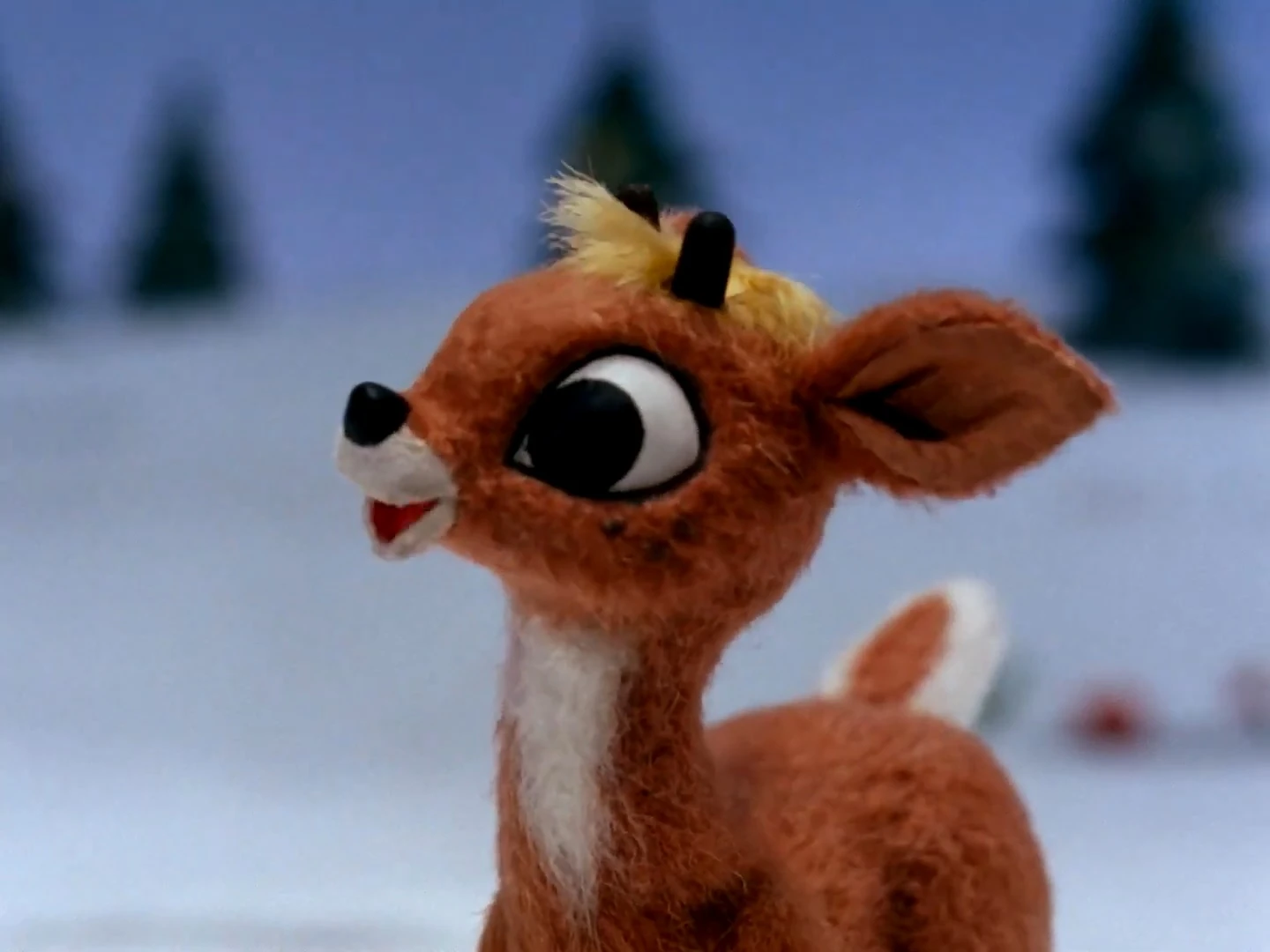 A yearling buck, Fireball attempts to befriend Rudolph (whose glowing red nose is hidden by a false one) before the start of the "reindeer games." Shortly after introducing himself to Rudolph, Fireball playfully tells him of the attention he immediately receives at a distance from Clarice, a yearling doe.