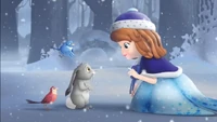 As they fly across the forest, the snowstorm starts to get worse and they are forced to land. Lost and worried, Sofia's Amulet summons Disney Princess Aurora who tells her she can count on the animals of the forest. Clover, Mia and Robin had stowed away in the coach to help Sofia find Roland. Mia and Robin fly around the forest asking all the animals to help find him and they do when they bring back the royal flag to Miranda.