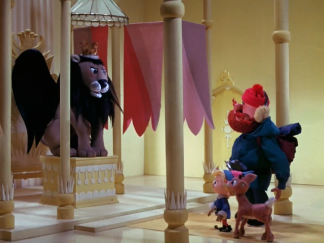 Rudolph, Hermey, and Yukon Cornelius meet King Moonracer.
