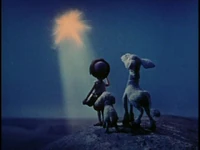 They resort to following the star of Bethlehem and soon come upon the barn, the birthplace of Jesus. They spot Joshua and happily run to meet him. Unfortunately, a horse-drawn cart comes rolling past and injures Baba. Heartbroken and carrying Baba, Aaron leads Samson and Joshua to one of the Kings. He begs him to save Baba but is told instead that nothing can be done. Aaron is then told to go look upon Jesus and give him a gift. He does not understand, but reluctantly lays down his beloved lamb and approaches Jesus. He plays a song on his drum, while the Vienna Boys Choir sings the title song. Jesus then smiles at him. After the song, he finds out that Baba is alive. He then realizes that the vow he had made and kept on the night of his parents' death was wrong. The star of Bethlehem still shines in the sky, protecting and illuminating Bethlehem forevermore.